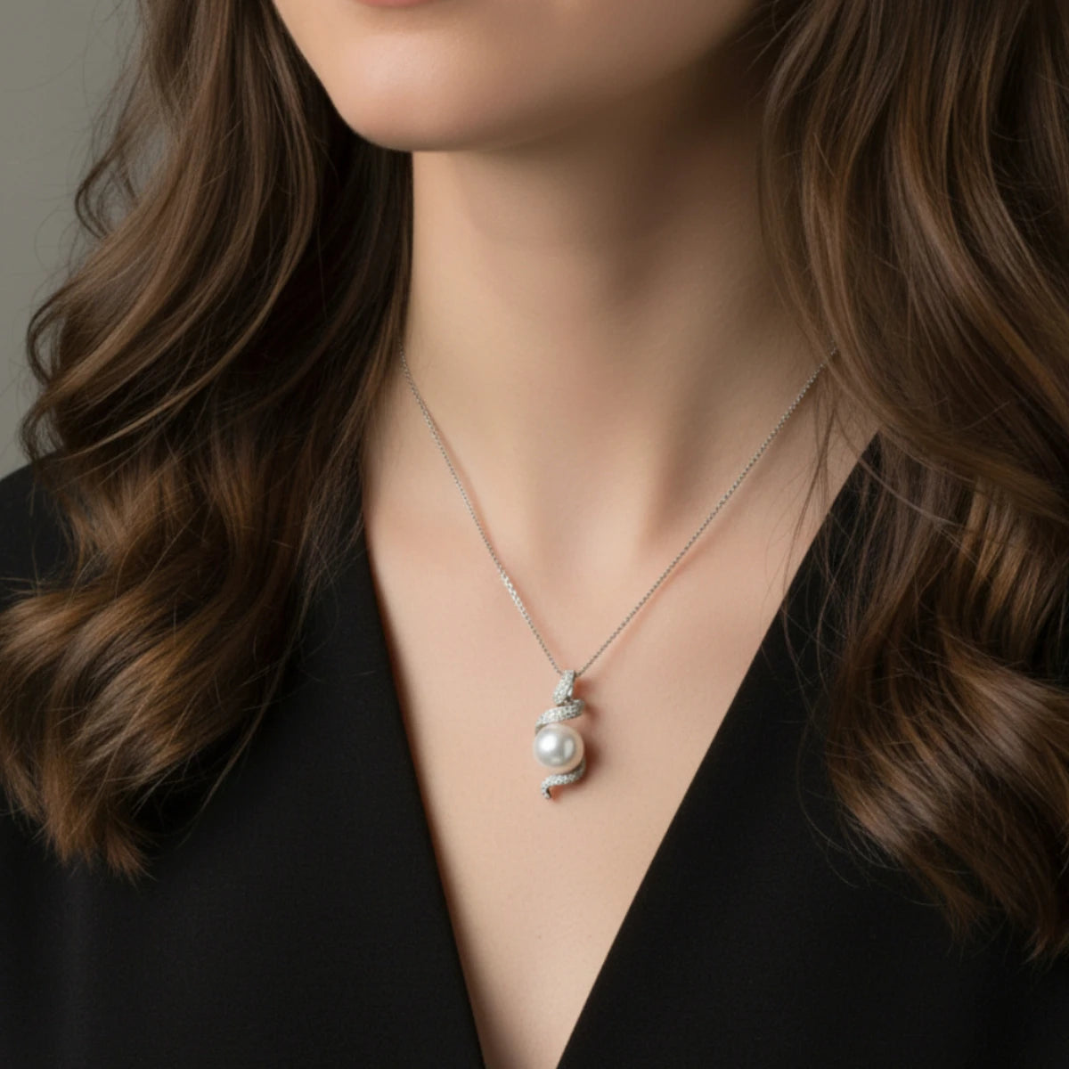 Αναδείξτε την κομψότητα και τη διαχρονική σας γοητεία με αυτό το εκλεπτυσμένο κολιέ από ασήμι 925. Το σχέδιο περιλαμβάνει ένα εντυπωσιακό μαργαριτάρι γλυκού νερού (8.5-9mm), τοποθετημένο σε μια κομψή ασημένια βάση διακοσμημένη με λαμπερό ζιργκόν, χαρίζοντας μια αίσθηση πολυτέλειας και φινέτσας. Η αλυσίδα από ασήμι 925 ολοκληρώνει το κομψό σύνολο.
