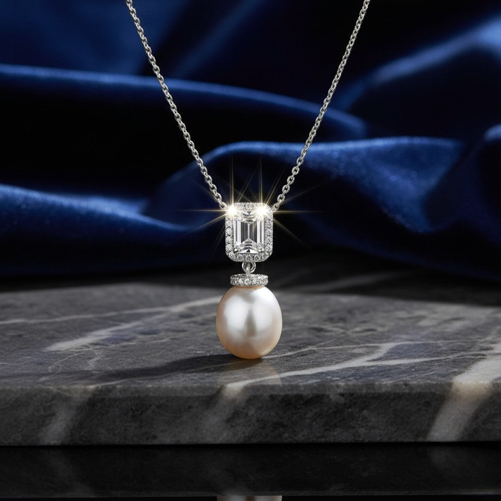 Ασημένιο 925 Κολιέ με Μαργαριτάρι Γλυκού Νερού & Ζιργκόν