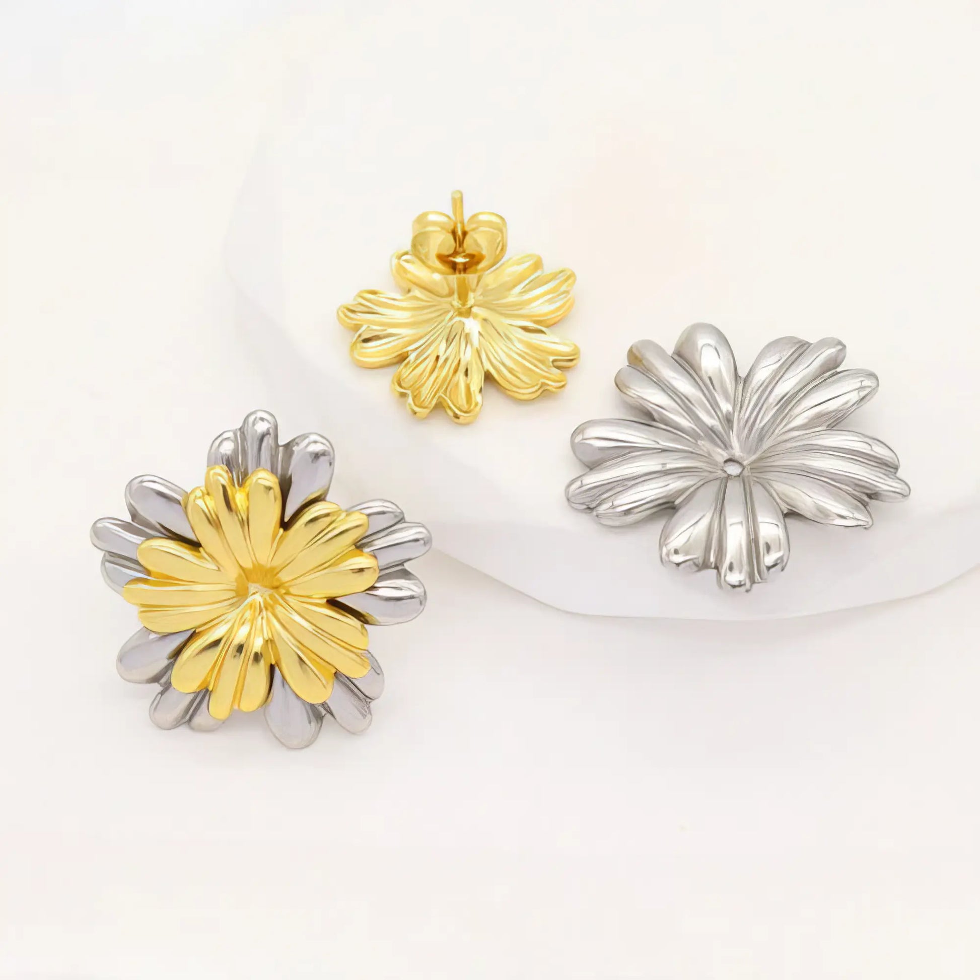 Ατσάλινα δίχρωμα σκουλαρίκια λουλούδι – 7.6g | 22mm