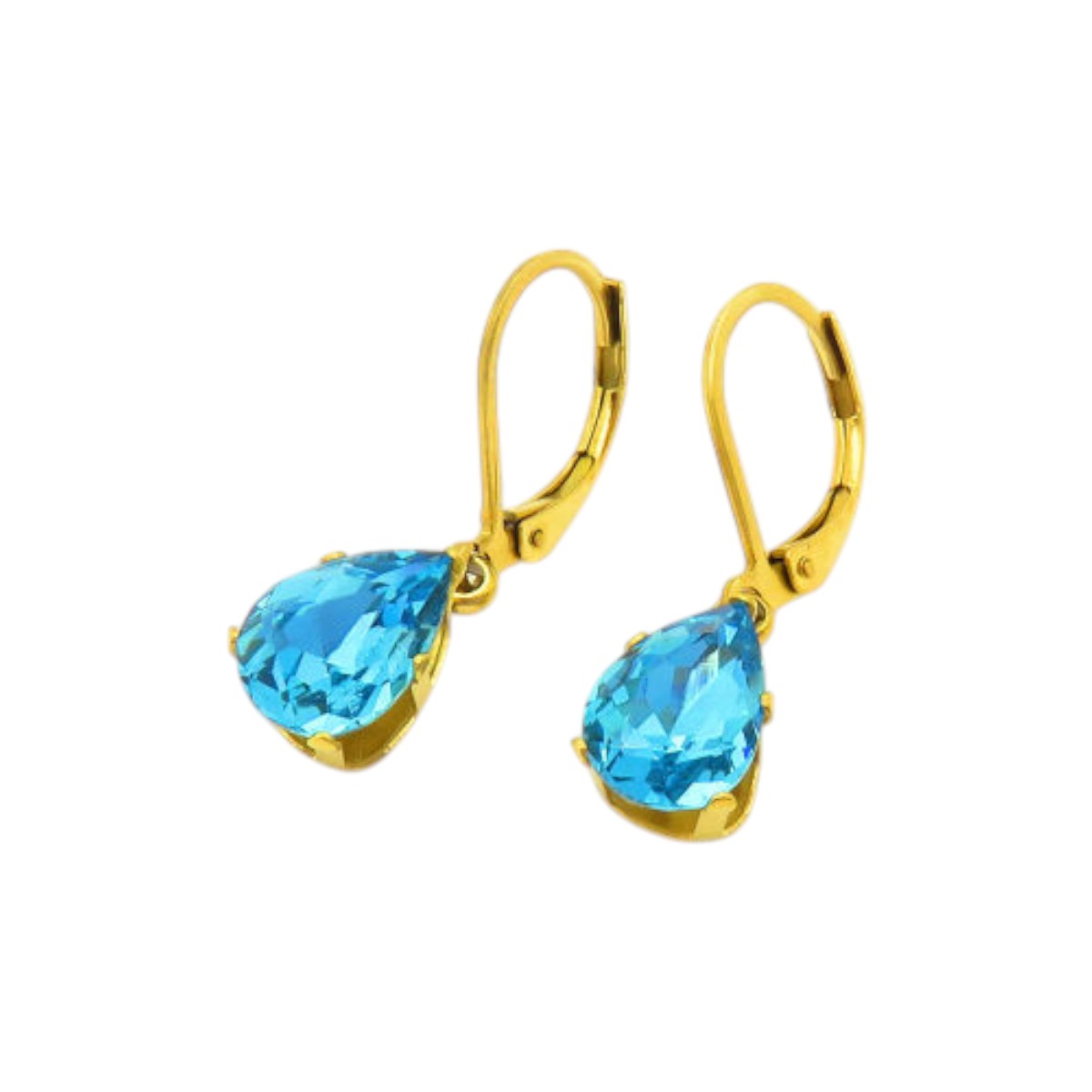 Επιχρυσωμένα Ατσάλινα Κρεμαστά Σκουλαρίκια με Γαλάζιες Πέτρες και Σχέδιο Σταγόνας 2cm