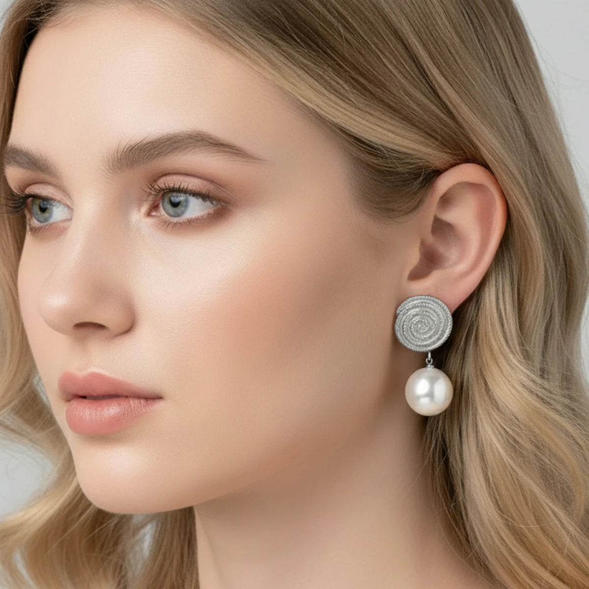 Περιγραφή: Αυτά τα εντυπωσιακά σκουλαρίκια διαθέτουν έναν κυκλικό σχεδιασμό από ανοξείδωτο ατσάλι, με μια λαμπερή πέρλα που κρέμεται, προσφέροντας μια κομψή και μοντέρνα αισθητική. Το σπειροειδές μοτίβο προσθέτει μοναδικότητα, ενώ η πέρλα δίνει μια κλασική νότα.