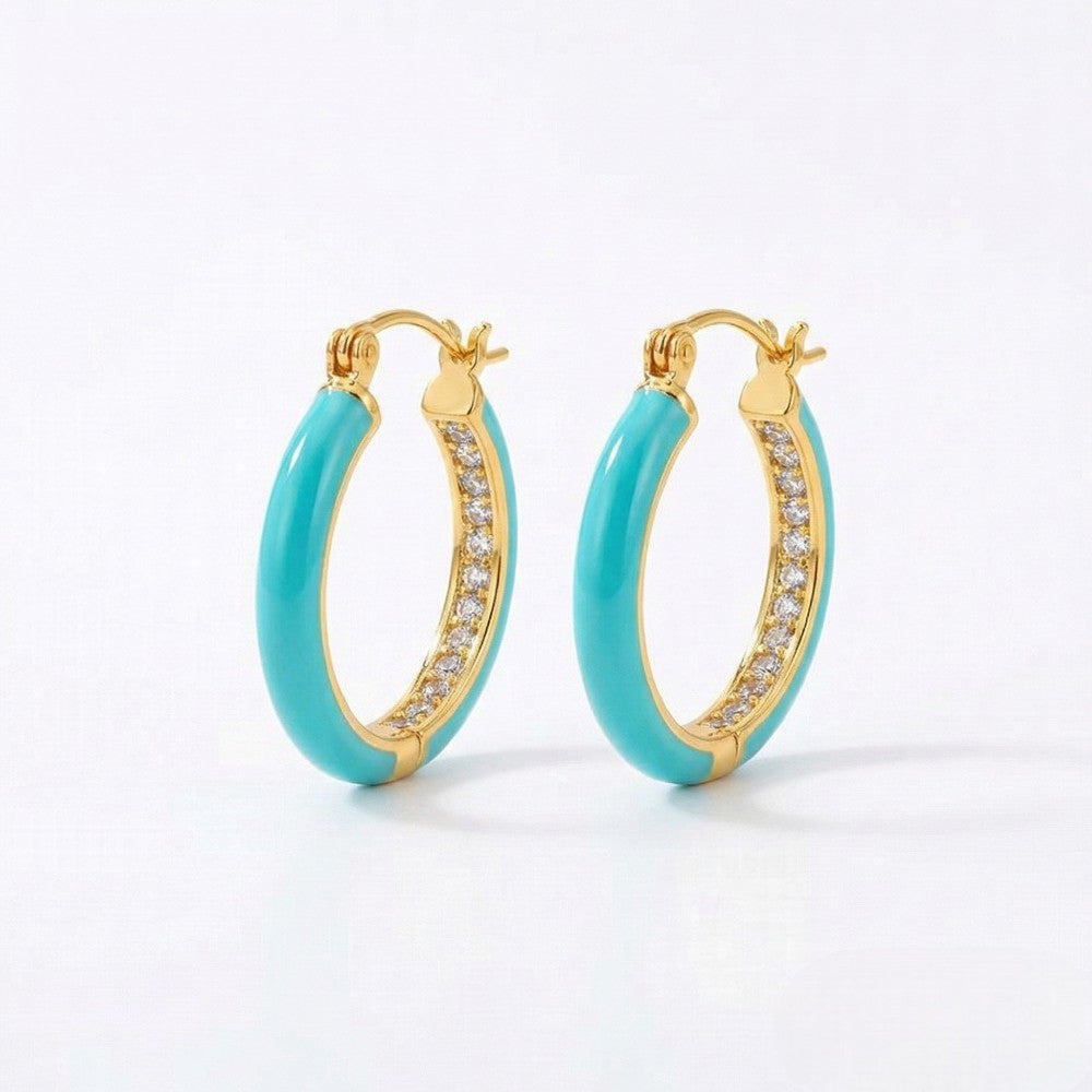 Ατσάλινα σκουλαρίκια κρίκοι με γαλάζιο σμάλτο και ζιργκόν
