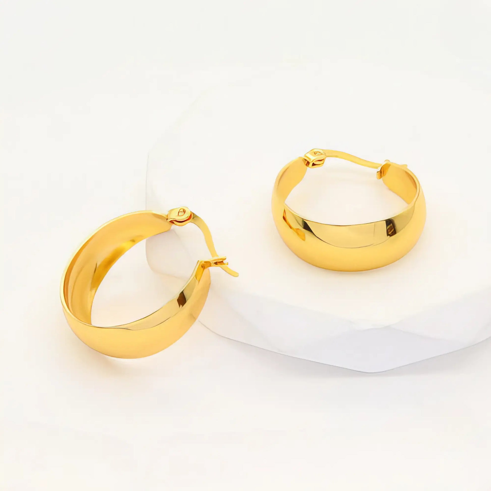 Ελαφριοί και διακριτικοί κρίκοι από ανοξείδωτο ατσάλι σε χρυσή απόχρωση. Ιδανικοί για καθημερινή χρήση, χαρίζουν λάμψη και στυλ χωρίς να βαραίνουν το αυτί.