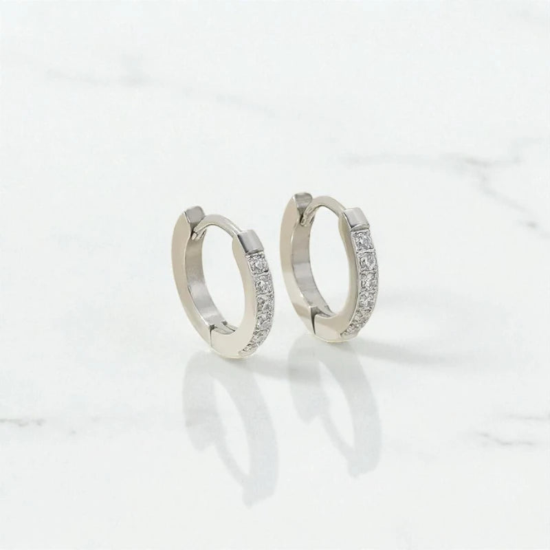 Κλασικοί μικροί κρίκοι από ανοξείδωτο ατσάλι, διακοσμημένοι με λαμπερά ζιργκόν στη μπροστινή όψη. Ιδανικοί για όσους προτιμούν minimal αλλά εντυπωσιακά κοσμήματα που φοριούνται από το πρωί έως το βράδυ.