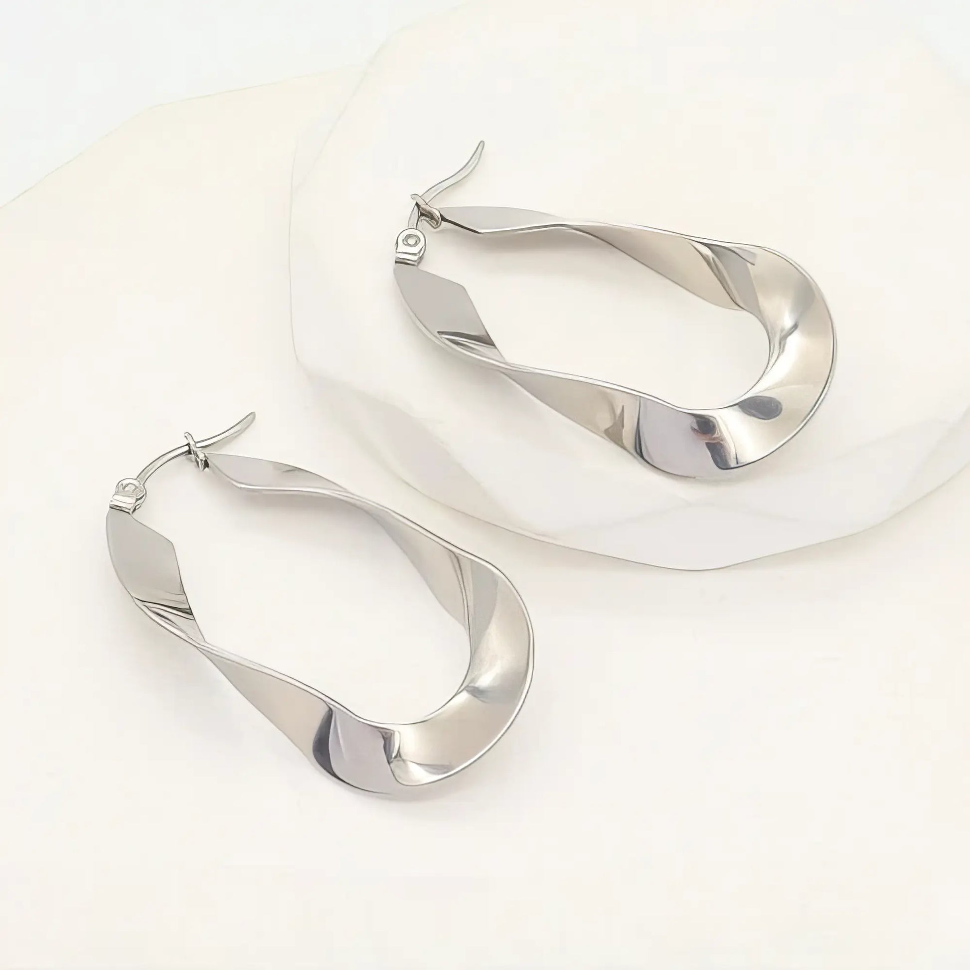 Ατσάλινα σκουλαρίκια σταγόνα ασημί – 3.9cm