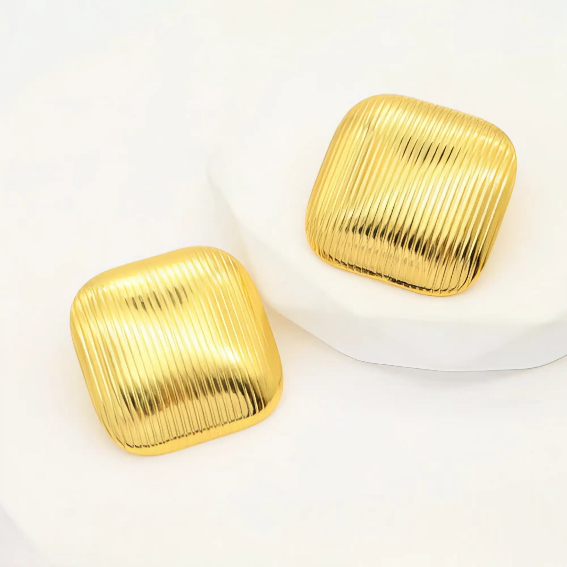 Κομψά και bold, αυτά τα σκουλαρίκια με ανάγλυφες κάθετες γραμμές χαρίζουν ένταση και μοντέρνα διάθεση. Ιδανικά για γυναίκες που αγαπούν το statement κόσμημα.