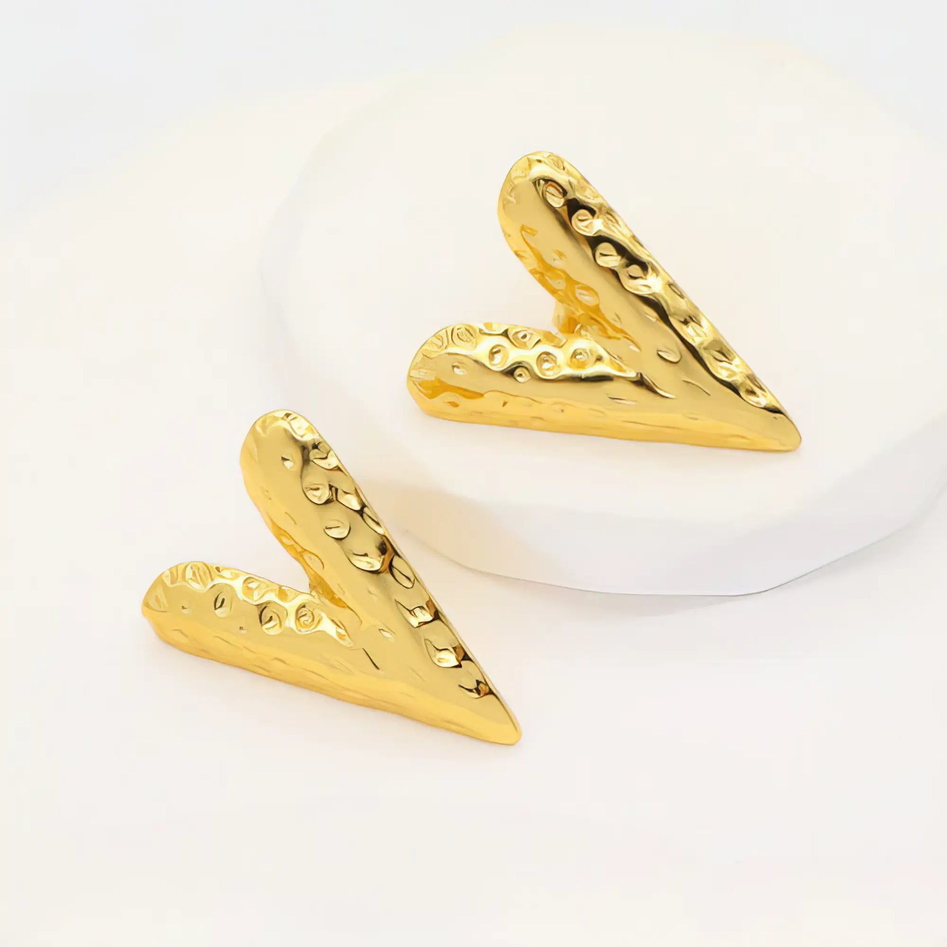 Ατσάλινα σκουλαρίκια τρίγωνα με hammered υφή – 8.3g | 32x24mm