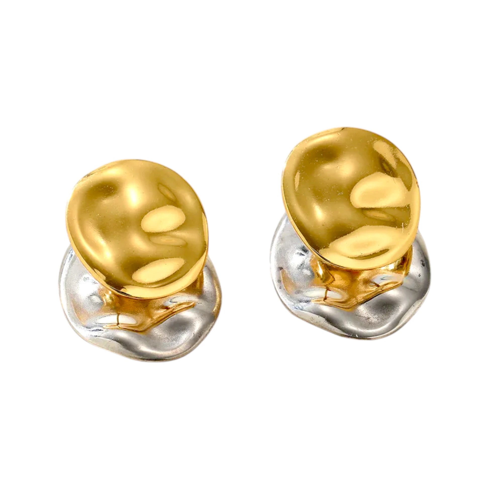Αυτά τα εντυπωσιακά σκουλαρίκια με τον οργανικό, ανάγλυφο σχεδιασμό συνδυάζουν δύο τόνους μετάλλου — χρυσό και ασημί — και αποπνέουν μια σύγχρονη, καλλιτεχνική αισθητική. Ταιριάζουν άψογα με minimal ή elegant εμφανίσεις, μαύρα ή λευκά outfits, αλλά και με μονόχρωμα σακάκια για πιο fashion αποτέλεσμα. Συνδύασέ τα με δαχτυλίδι σε αντίστοιχο ύφος ή με ένα λεπτό βραχιόλι για ισορροπημένο look.