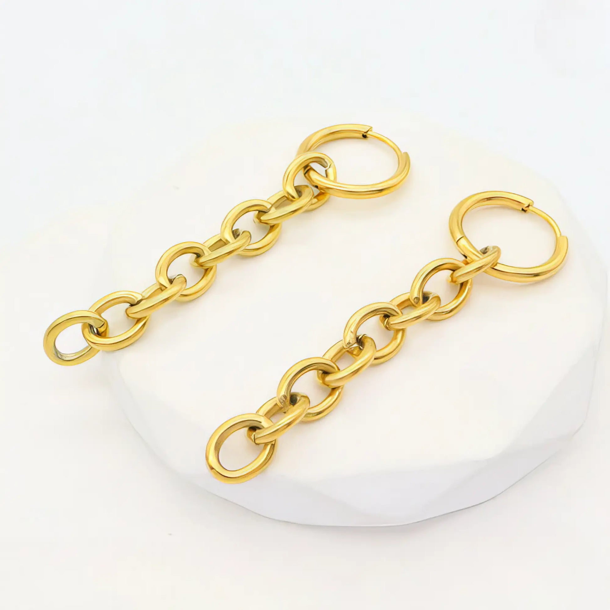 Μακριά σκουλαρίκια σε σχέδιο αλυσίδας, για urban chic στυλ με άποψη.
