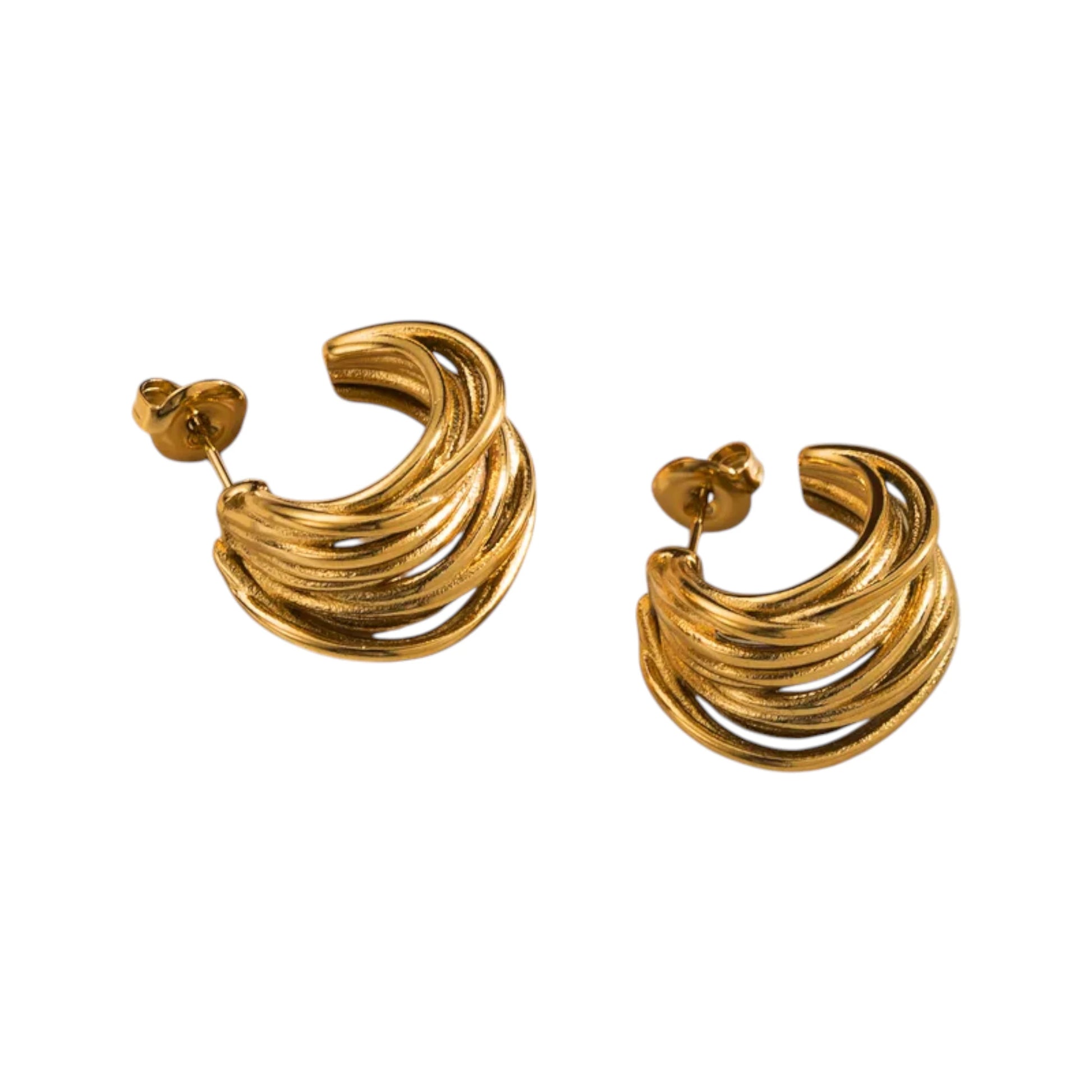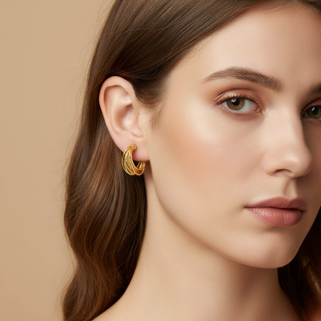 Κομψοί και σύγχρονοι κρίκοι που αναδεικνύουν κάθε look με μια διακριτική αλλά εντυπωσιακή λάμψη. Ο layered σχεδιασμός τους προσθέτει βάθος και κίνηση, ιδανικό για να συνδυαστούν με sleek κοτσίδες, turtlenecks ή minimal φορέματα. Ταιριάζουν απόλυτα με χρυσά δαχτυλίδια ή ένα λεπτό cuff βραχιόλι για ολοκληρωμένο σύνολο.