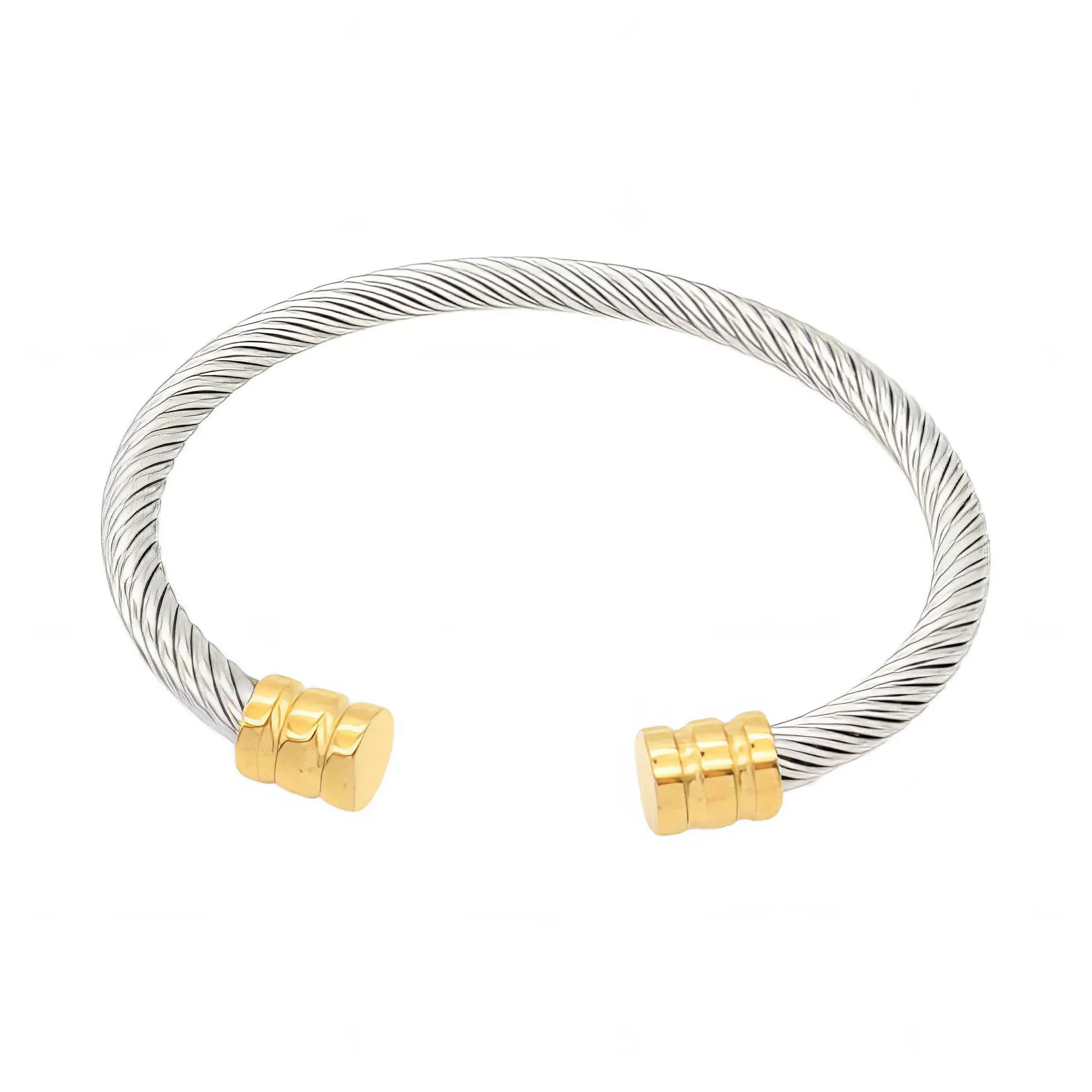 Ασημί βραχιόλι χειροπέδα συρμάτινη με χρυσές λεπτομέρειες | 17.9g | 60x5mm