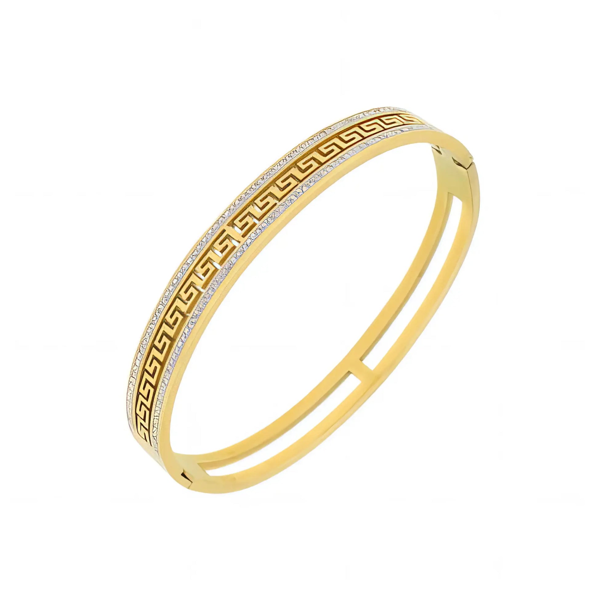 Ατσάλινη χειροπέδα χρυσό με ελληνικό μοτίβο και ζιργκόν (BA1006)