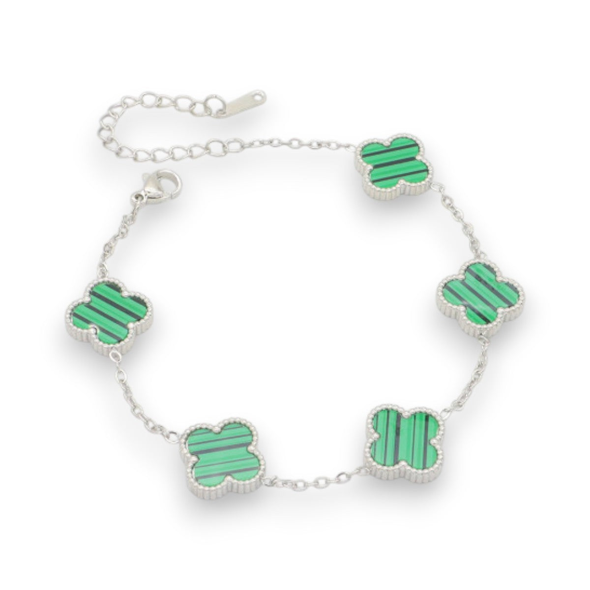 Ατσάλινο Ασημί Βραχιόλι με Πράσινα Τετράφυλλα – 19 + 5 cm