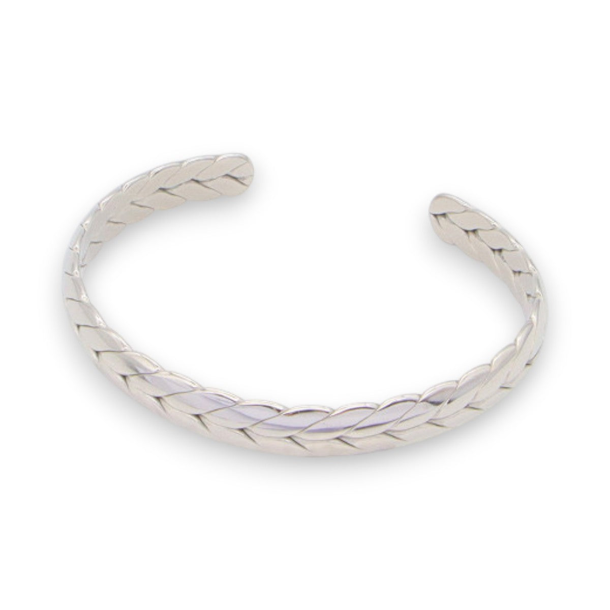 Ατσάλινο Ασημί Βραχιόλι Cuff με Ανάγλυφο Πλεξούδα Design (BA1022)