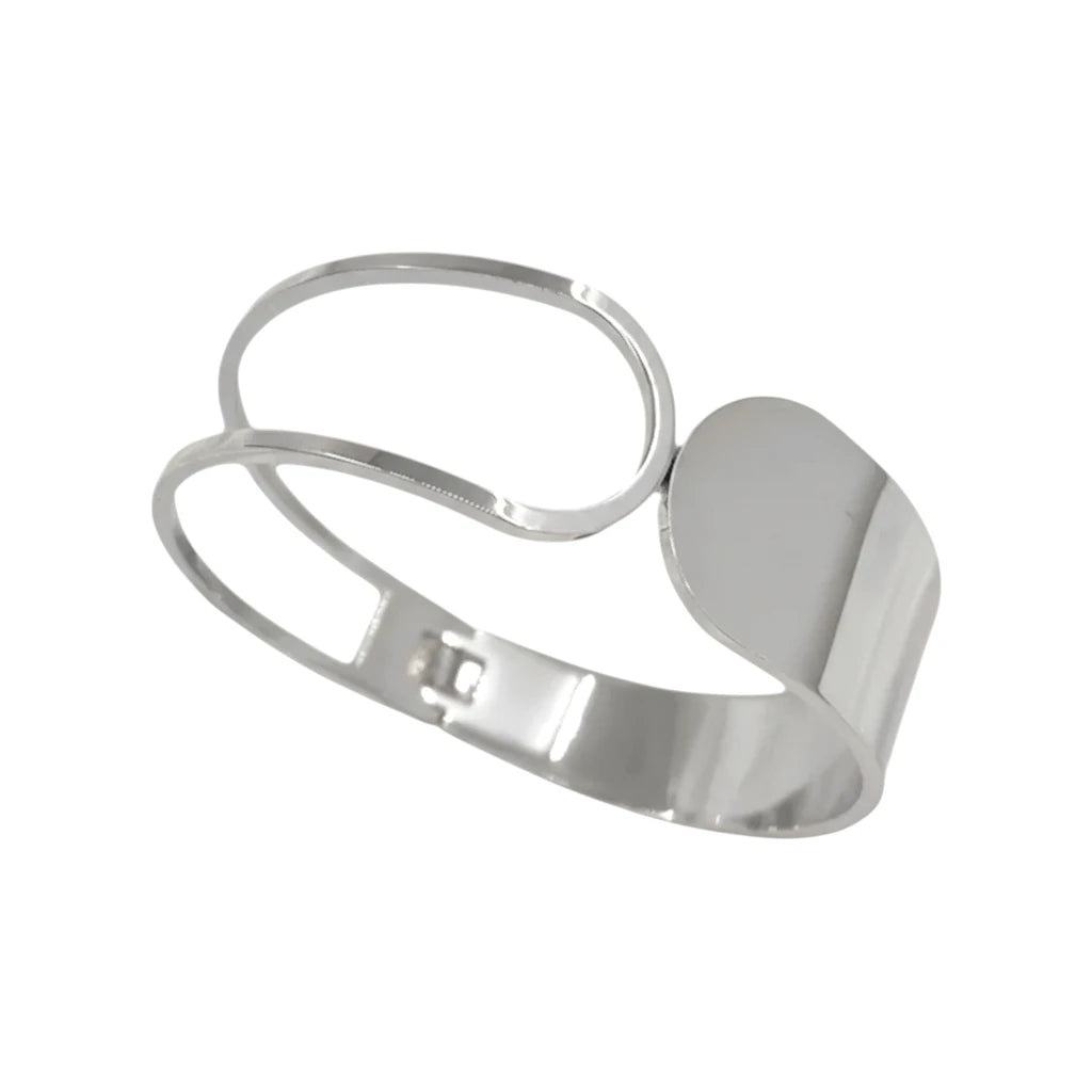 🤍 Ατσάλινο Ασημί Βραχιόλι Cuff με Αφηρημένο Σχέδιο