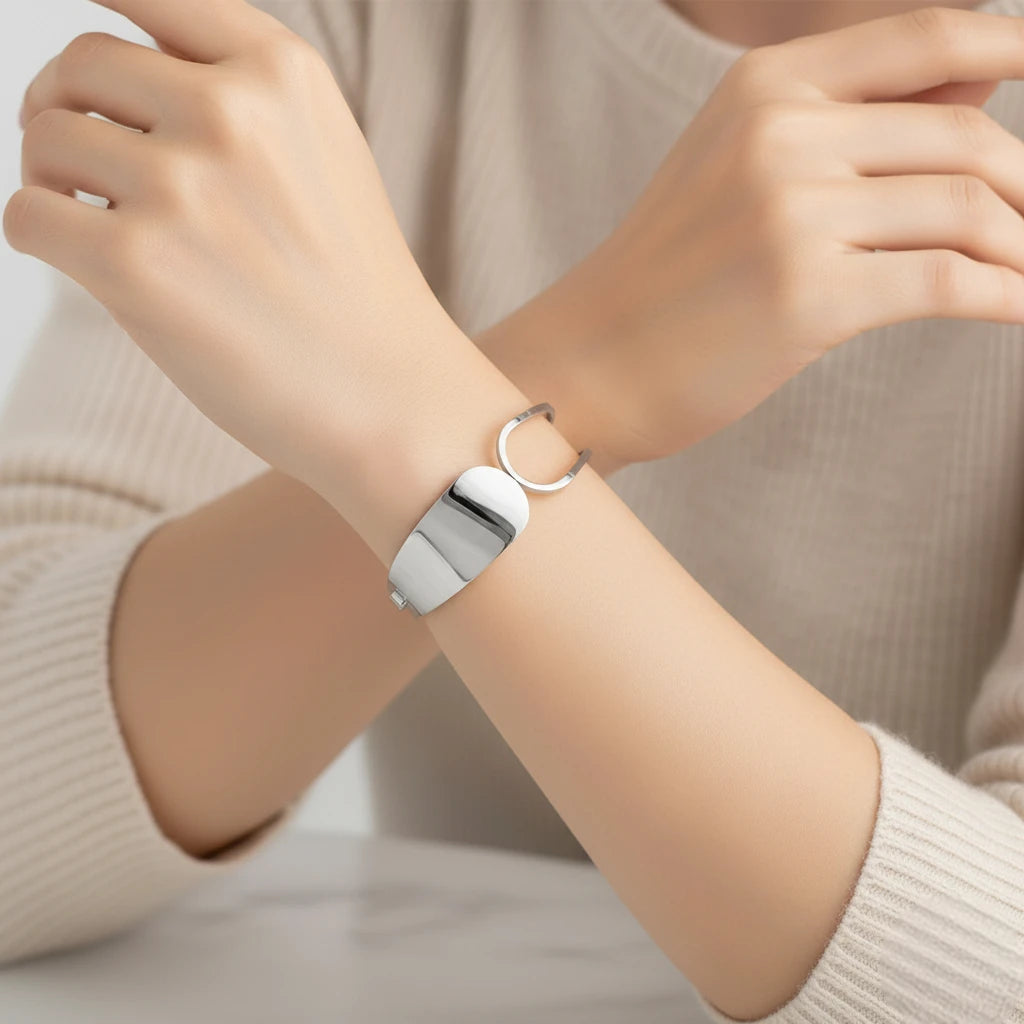 Μίνιμαλ αλλά εντυπωσιακό, αυτό το cuff βραχιόλι προσθέτει αρχιτεκτονικό ενδιαφέρον σε κάθε outfit.