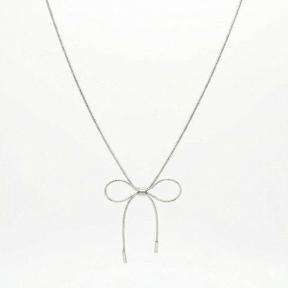 Ατσάλινο Ασημί Κολιέ με Φιόγκο (N3325)