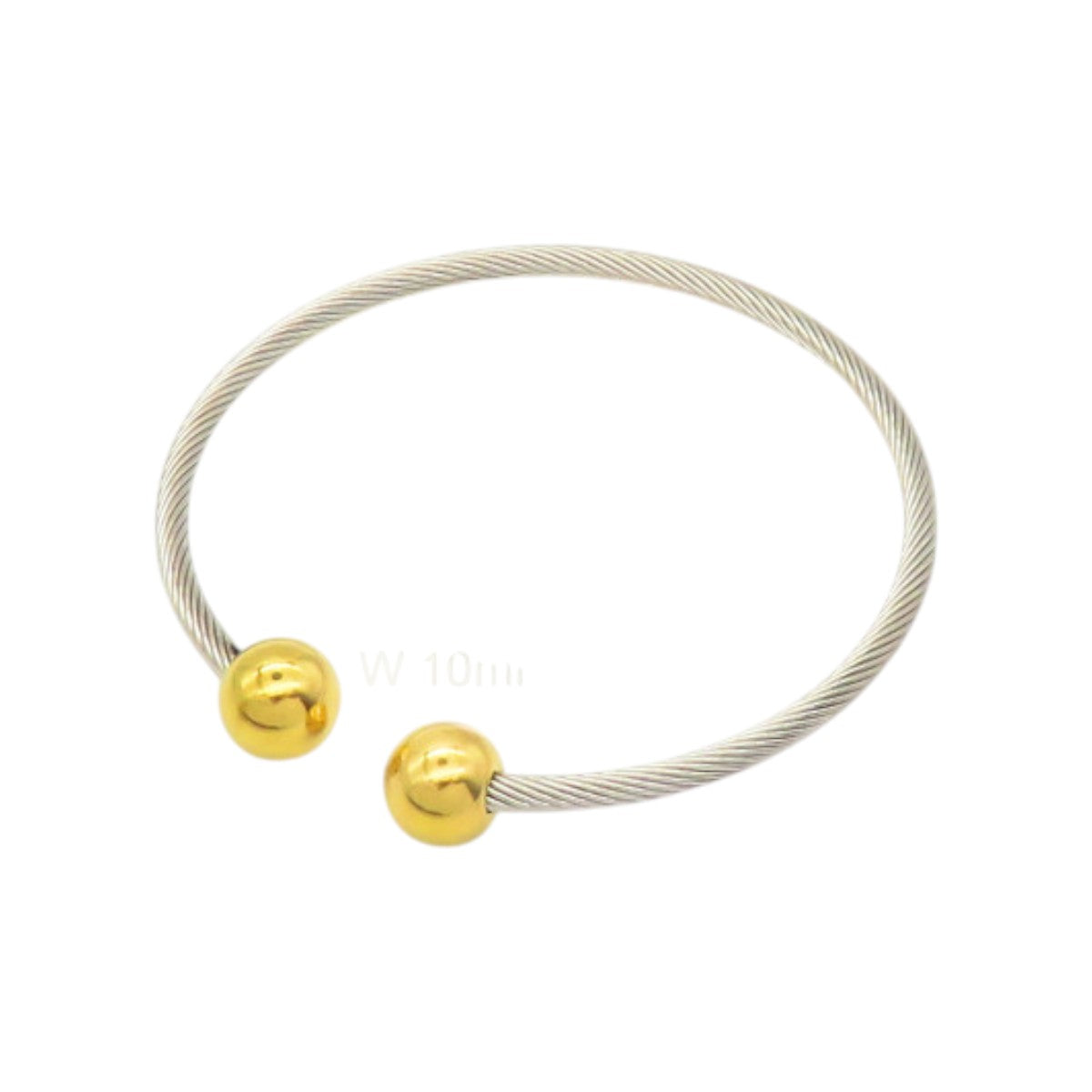 Ατσάλινο Βραχιόλι Δίχρωμο (Ασημί-Χρυσό) με Τερματικές Μπάλες 10 mm
