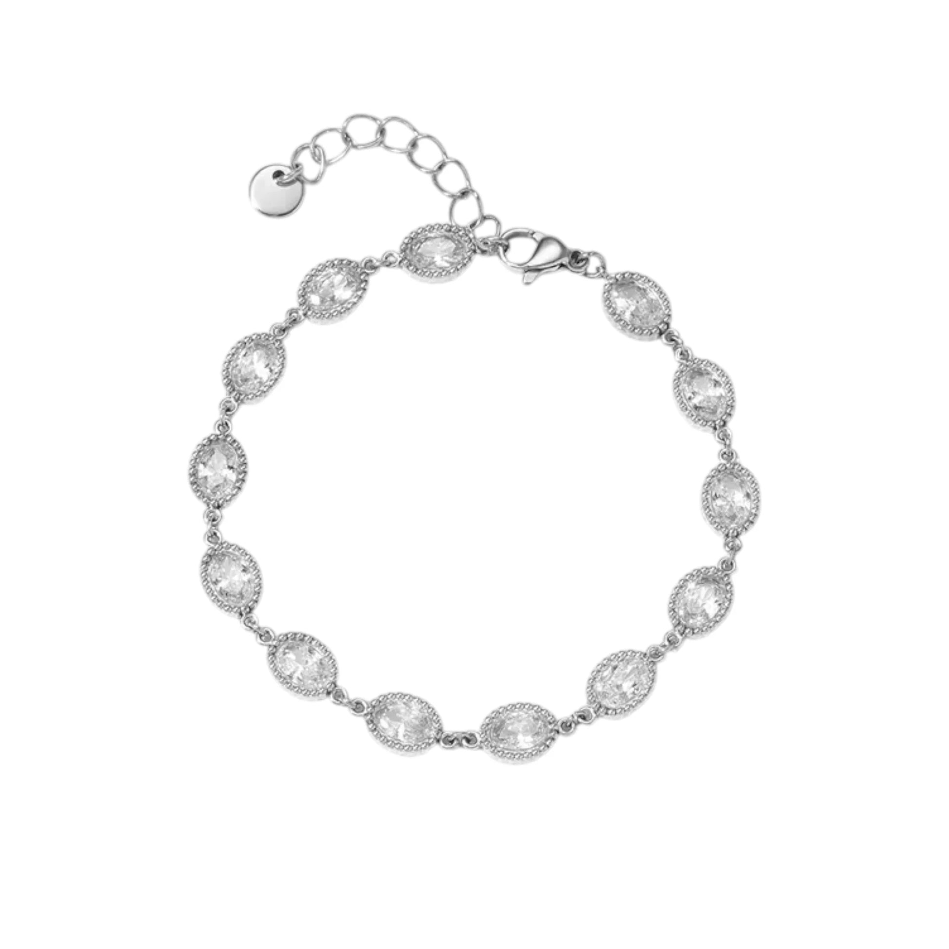 Κομψό και λαμπερό, αυτό το βραχιόλι από ανοξείδωτο ατσάλι σε ασημί απόχρωση ξεχωρίζει για τις λεπτομέρειες με οβάλ λευκά ζιργκόν που αντανακλούν το φως εντυπωσιακά. Φοριέται άνετα όλες τις ώρες της ημέρας και προσθέτει μια elegant πινελιά σε κάθε εμφάνιση. Ανθεκτικό στη χρήση και φιλικό προς το δέρμα – δεν μαυρίζει, δεν ξεθωριάζει.