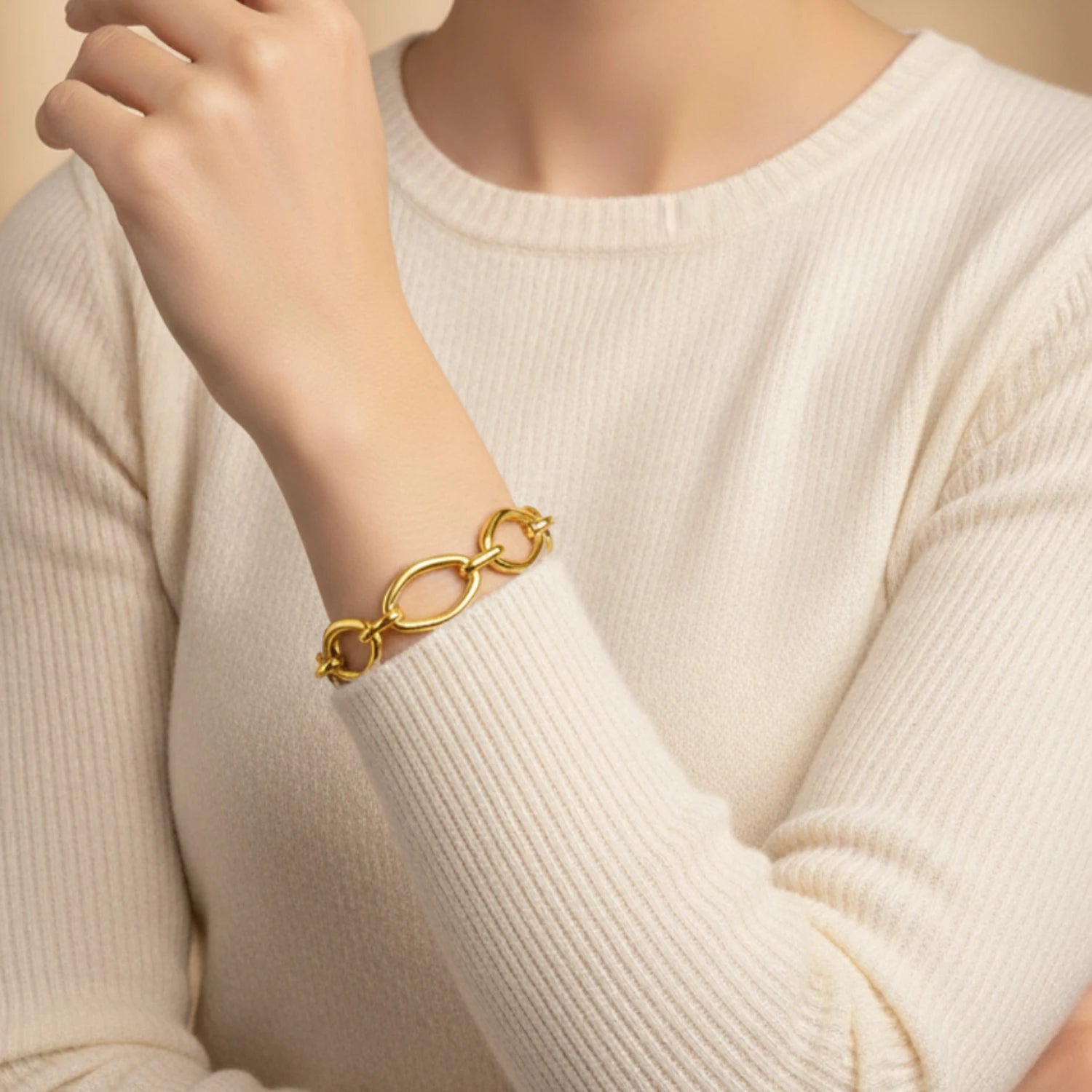 💎 Ατσάλινο Βραχιόλι με Οβάλ Κρίκους – Χρυσό