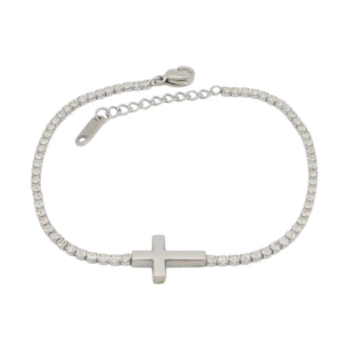 Ατσάλινο βραχιόλι ριβιέρα με σταυρό χρώμα ασημί (B3490)