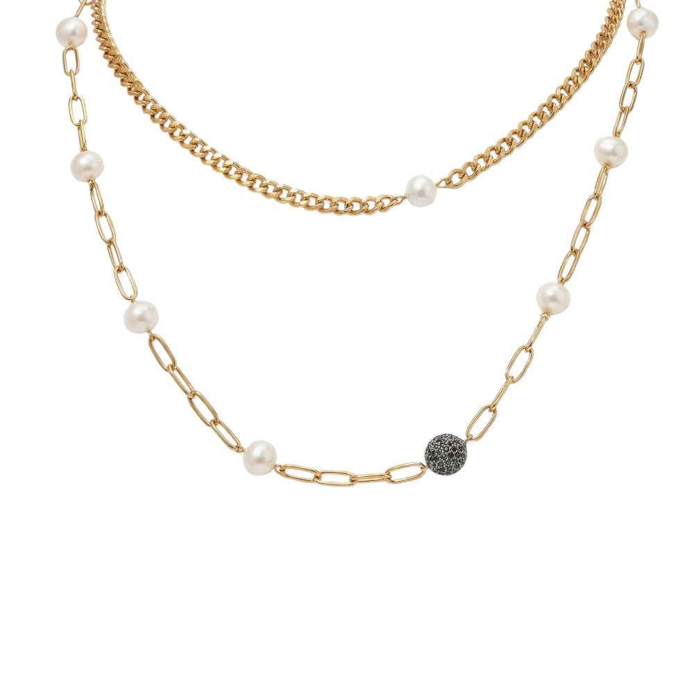 Ατσάλινο Κολιέ Διπλό με Μαργαριτάρια & Κρυστάλλινη Λάβα – Gold