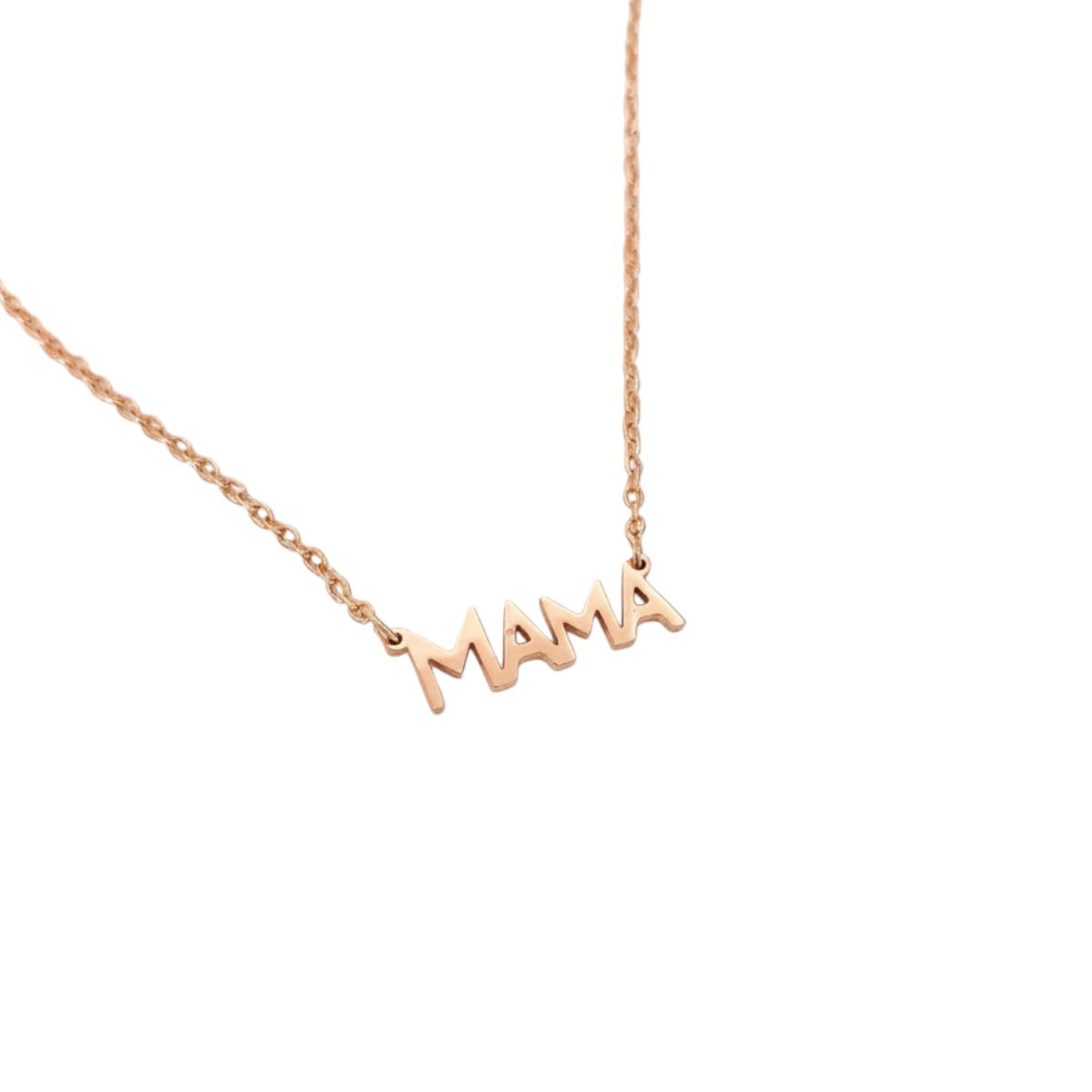 💖 Ατσάλινο Κολιέ “MAMA” σε Ροζ Χρυσό – Minimal Love Statement
