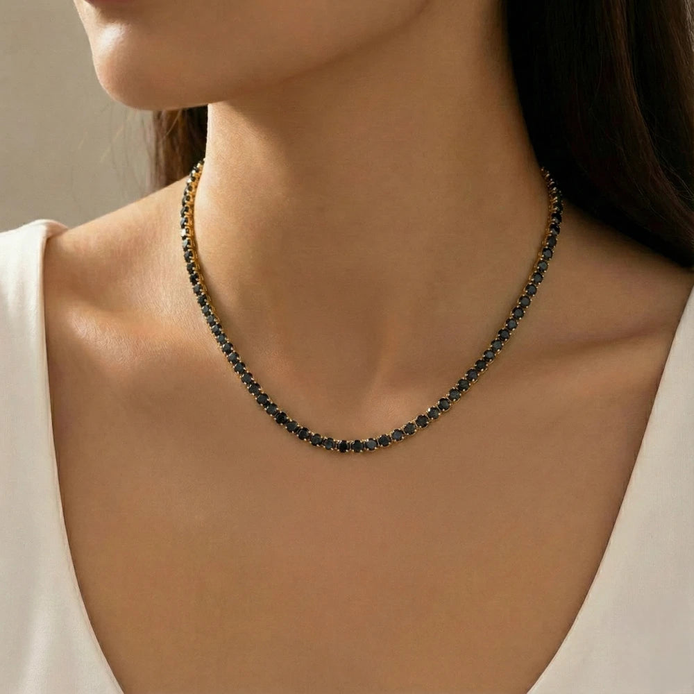 Κάνε bold statement με αυτό το εκλεπτυσμένο μαύρο tennis κολιέ από ανοξείδωτο ατσάλι, με μαύρα ζιργκόν που κλέβουν τις εντυπώσεις.