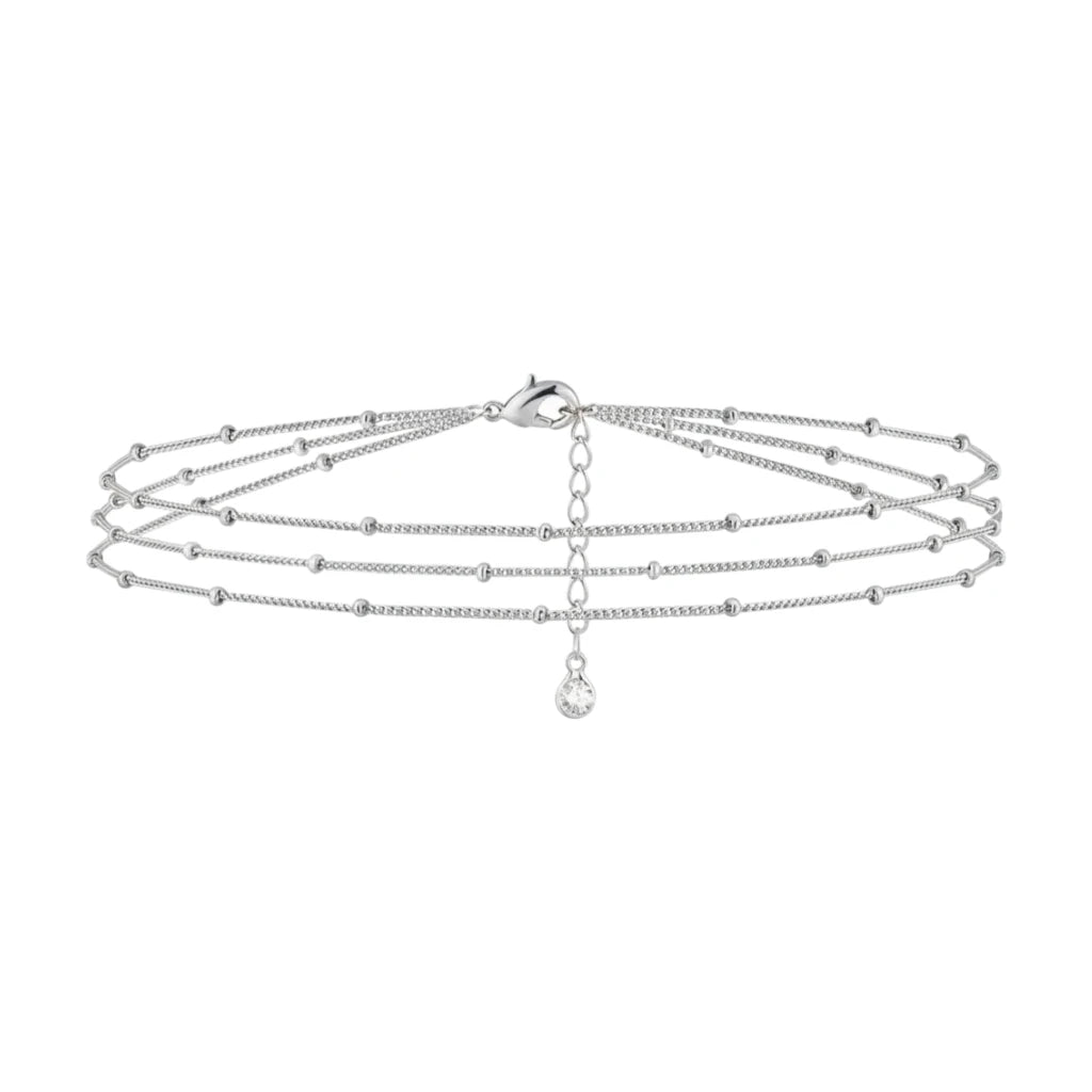 Ατσάλινο Τσόκερ Πολυστρωματικό Ασημί με Κρεμαστό Ζιργκόν