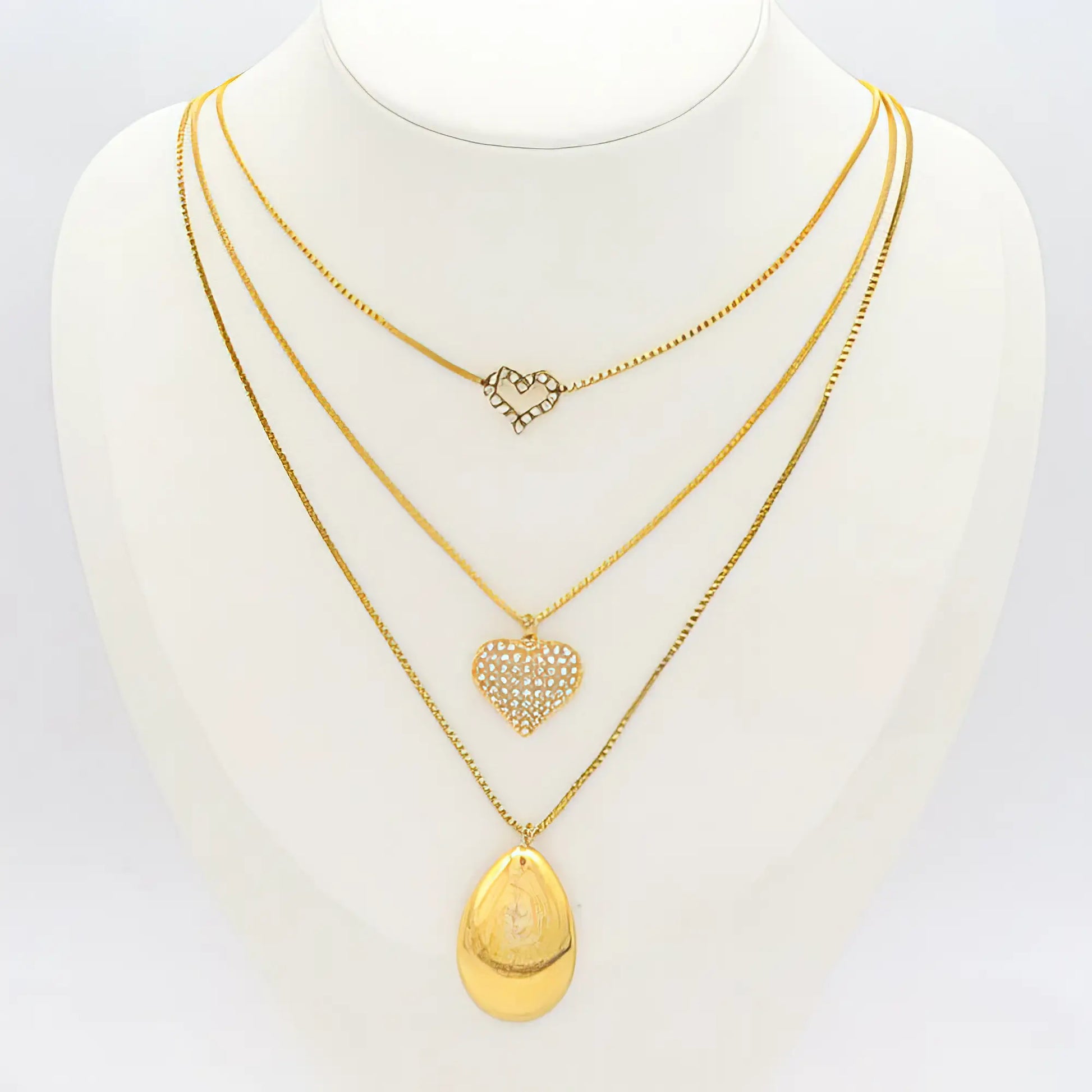 Ατσάλινο Πολύσειρο Κολιέ με Καρδιές & Δάκρυ (N3291)