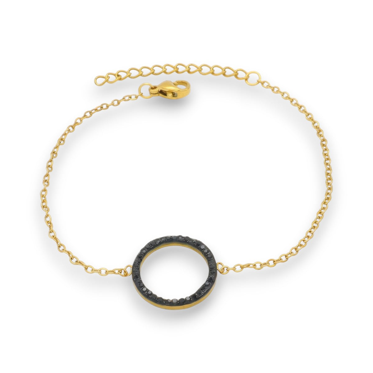 ✨ Ατσάλινο Χρυσό Βραχιόλι με Μαύρο Κύκλο & Πέτρες