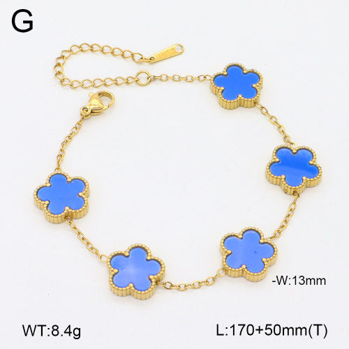Ατσάλινο Χρυσό Βραχιόλι με Μπλε Λουλούδια (B3538)