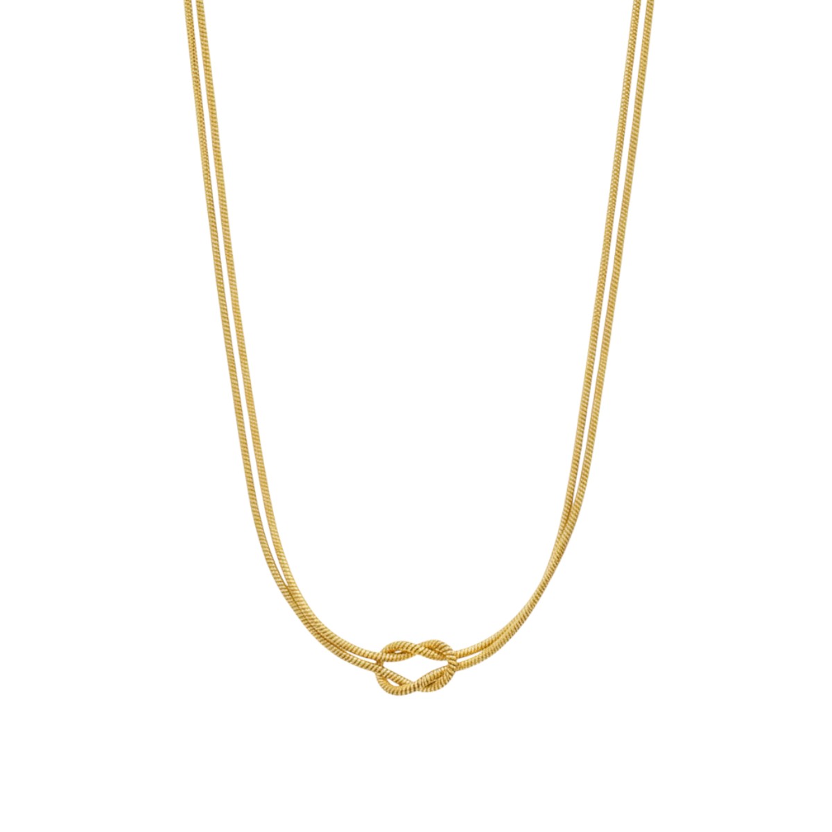 Ένα elegant και διαχρονικό κολιέ που αποπνέει απλότητα με χαρακτήρα. Η διπλή λεπτή αλυσίδα και ο διακριτικός κόμπος στο κέντρο δημιουργούν ένα στυλ minimal αλλά ιδιαίτερο, ιδανικό για καθημερινές και βραδινές εμφανίσεις. Φόρεσέ το μόνο του για refined αποτέλεσμα ή συνδύασέ το με κοντύτερο choker για layered look. Ταιριάζει άψογα με σκουλαρίκια ή βραχιόλια σε ίδια χρυσή απόχρωση.