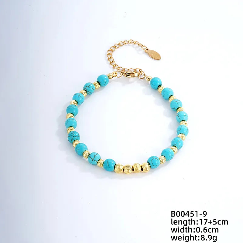 Βραχιόλι ατσάλινο με χάντρες τυρκουάζ