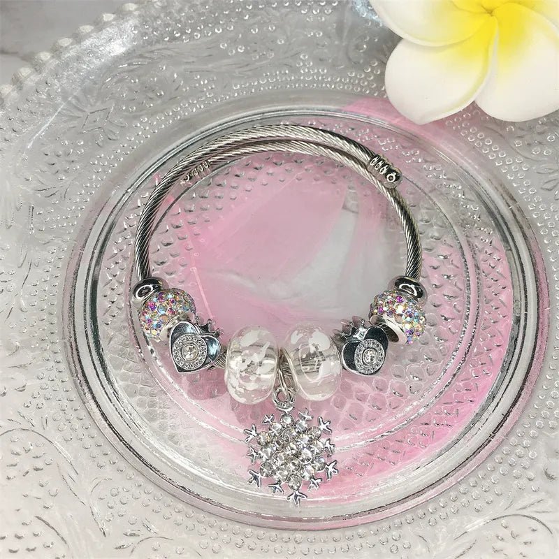Βραχιόλι ατσάλινο χρώμα ασημί με κρεμαστά στοιχεία