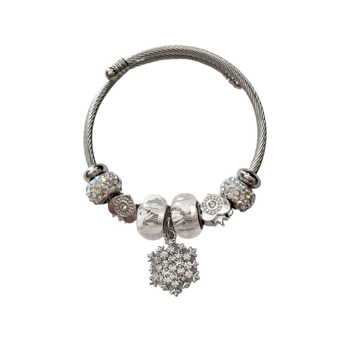 Βραχιόλι ατσάλινο χρώμα ασημί με κρεμαστά στοιχεία (B1378)