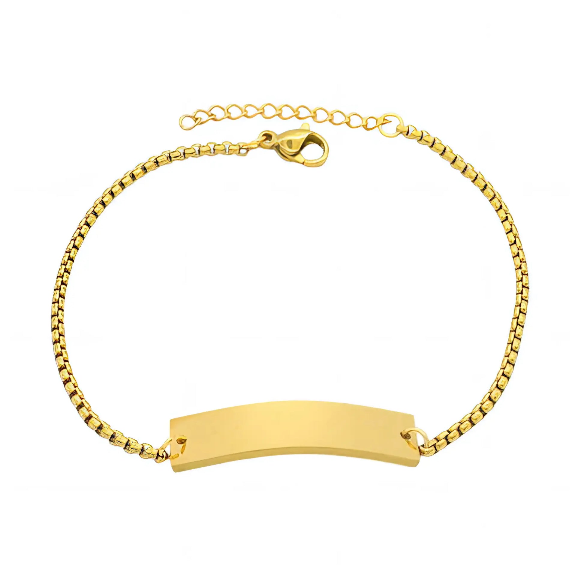 Κλασικό και διαχρονικό βραχιόλι με λεία πλάκα, ιδανικό για προσωποποιημένες χαράξεις ή για ένα καθαρό, minimal look.