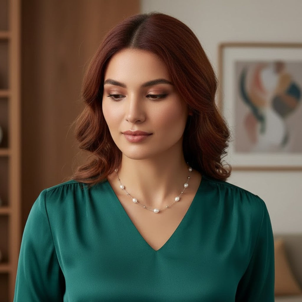 Minimal και διακριτικό, αυτό το elegant κολιέ συνδυάζει λεπτή χάλκινη αλυσίδα με φυσικά καλλιεργημένα μαργαριτάρια, προσφέροντας φινέτσα και θηλυκότητα σε κάθε εμφάνιση. Ιδανικό για layering αλλά και για να φορεθεί μόνο του.