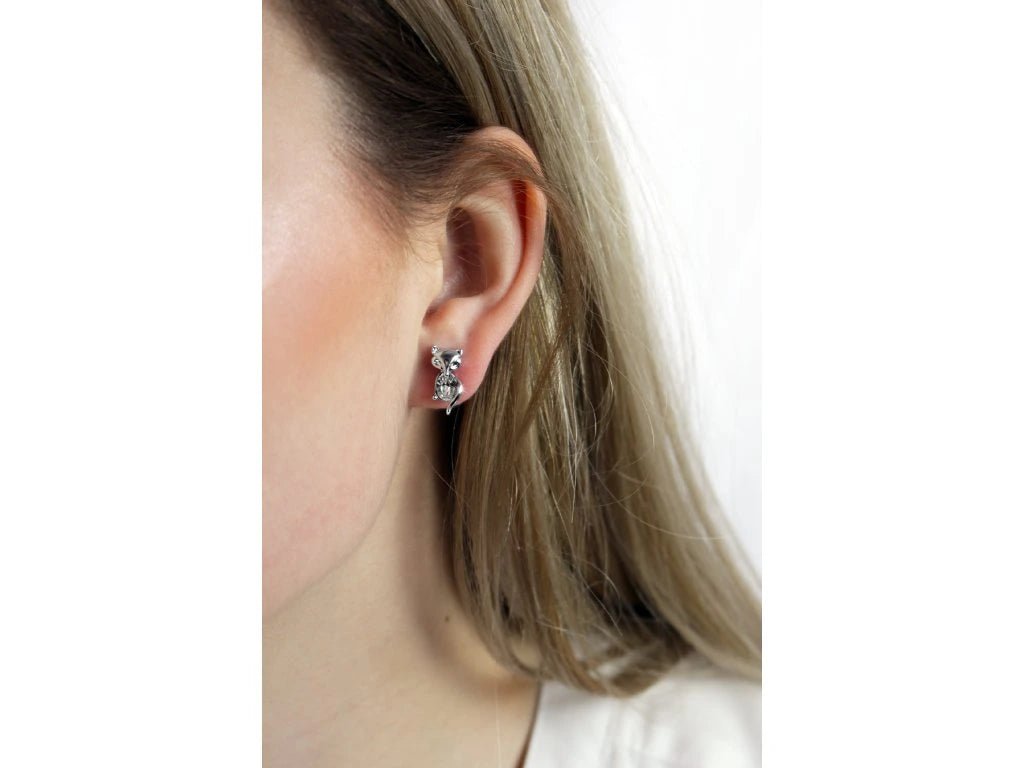 Τίτλος: Καρφωτά σκουλαρίκια με σχέδιο γάτας από κράμα μετάλλων και κρύσταλλα Swarovski, 1.5cm.