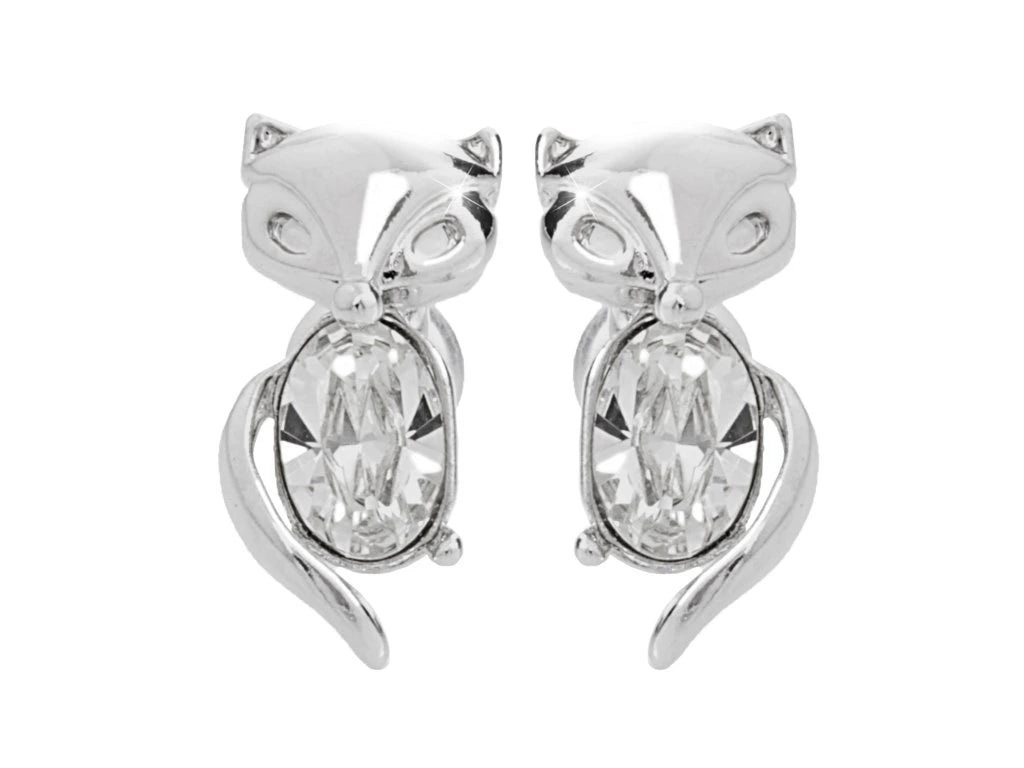 Καρφωτά σκουλαρίκια γάτα από κράμα μετάλλων με κρύσταλλα Swarovski (E1049)