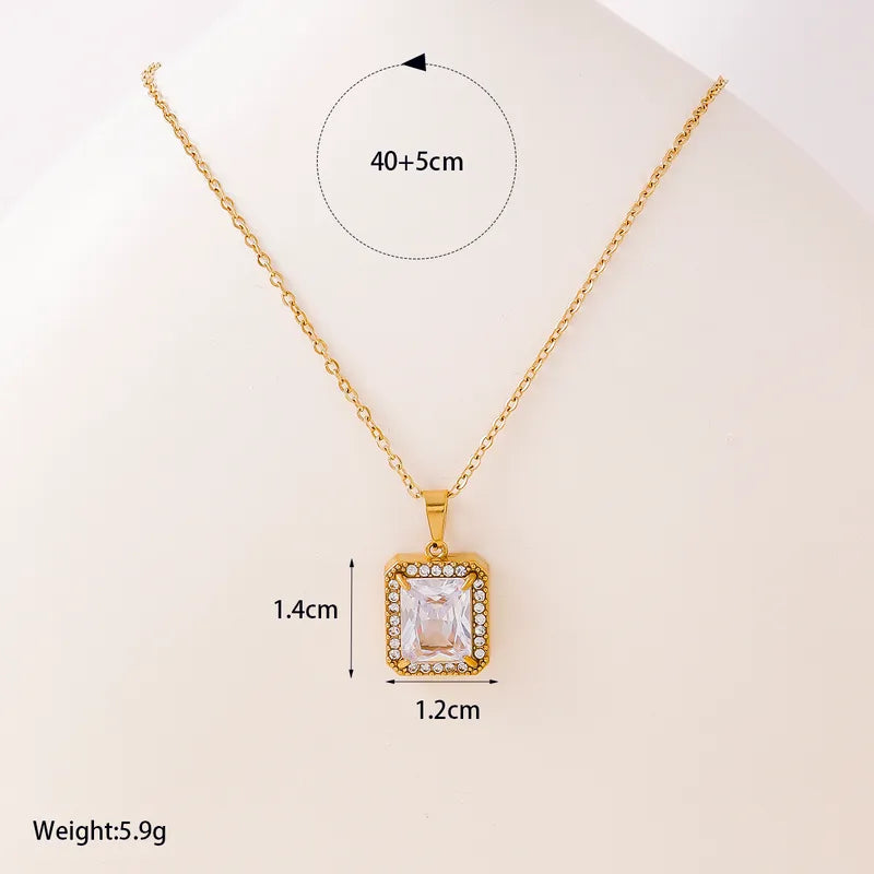 Κολιέ από Ατσάλι με Διάφανη Ορθογώνια Πέτρα (N1840)