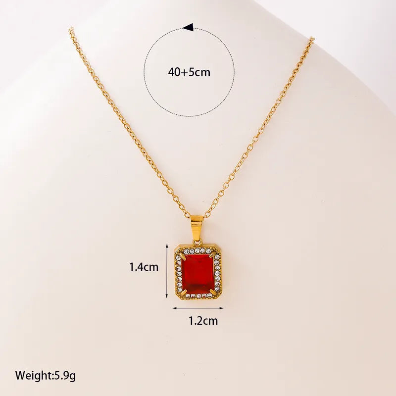 Κολιέ από Ατσάλι με Κόκκινη Ορθογώνια Πέτρα (N1841)