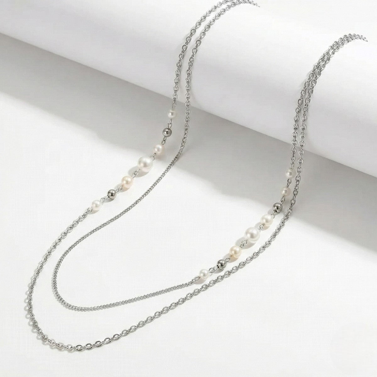 Κολιέ Μακρύ από Ατσάλι με Πέρλες (N1844)