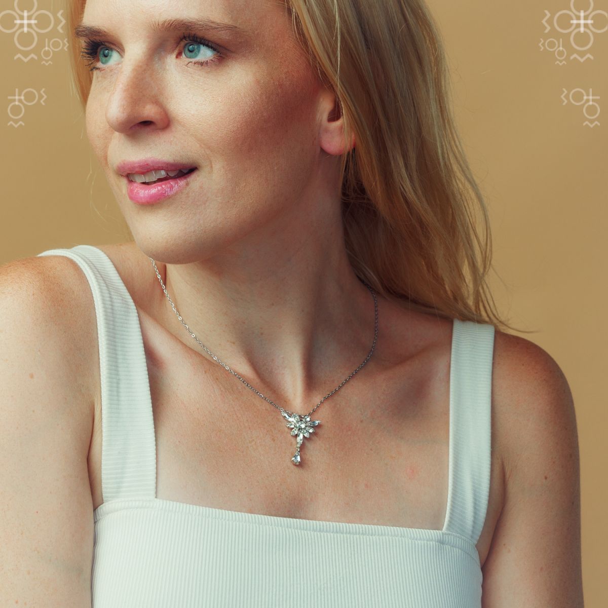Εντυπωσιακό κολιέ με μενταγιόν σε σχήμα αγγέλου, διακοσμημένο με κρύσταλλα Swarovski υψηλής λάμψης. Μια δημιουργία που συνδυάζει κομψότητα και φινέτσα, ιδανική για να ολοκληρώσει μια ιδιαίτερη εμφάνιση ή να προσφερθεί ως ξεχωριστό δώρο.