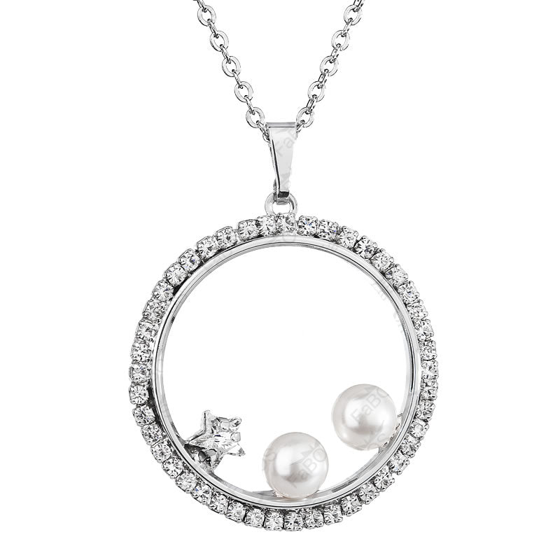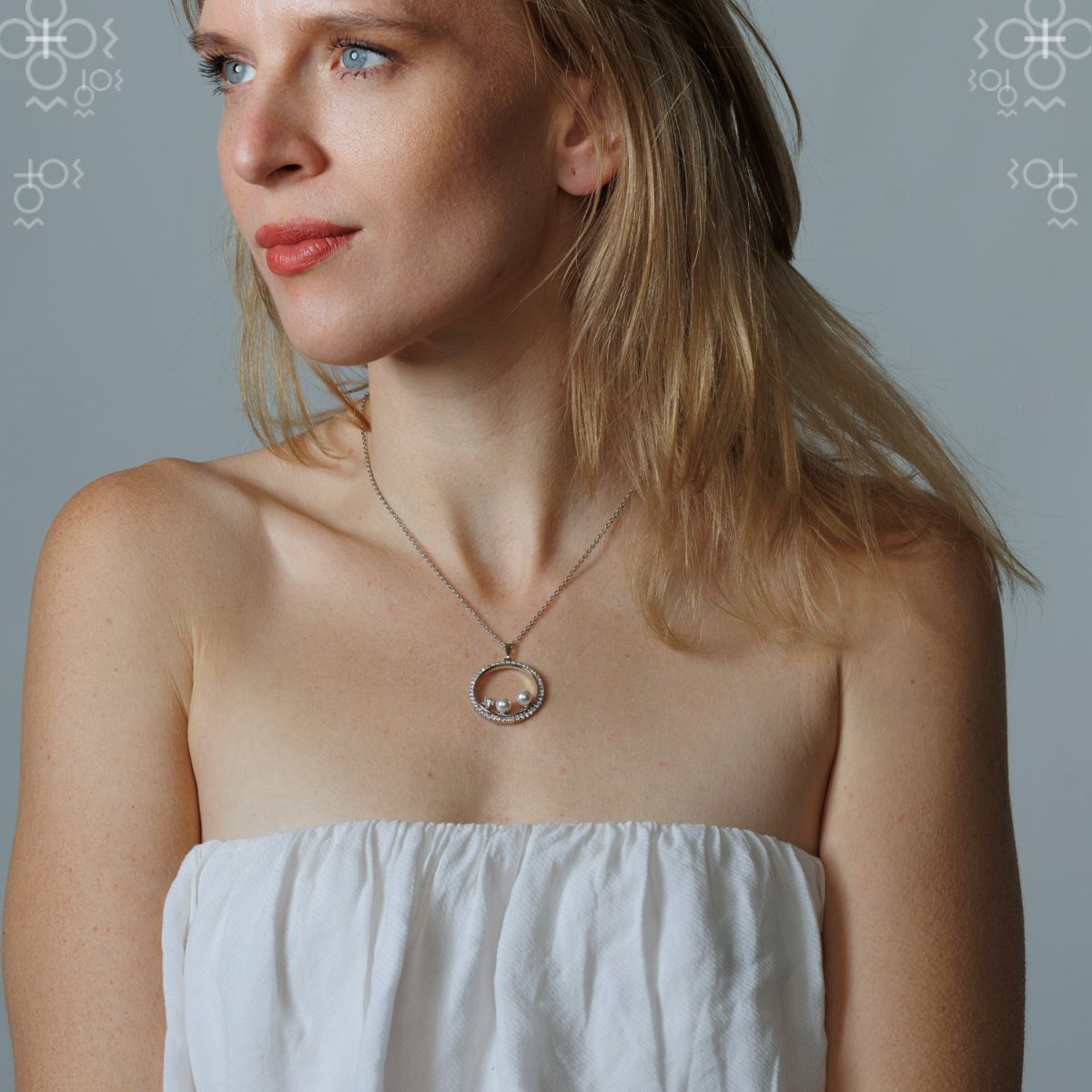 Κολιέ με κυκλικό μοτίφ, πέρλες και κρύσταλλα Swarovski (F1140)