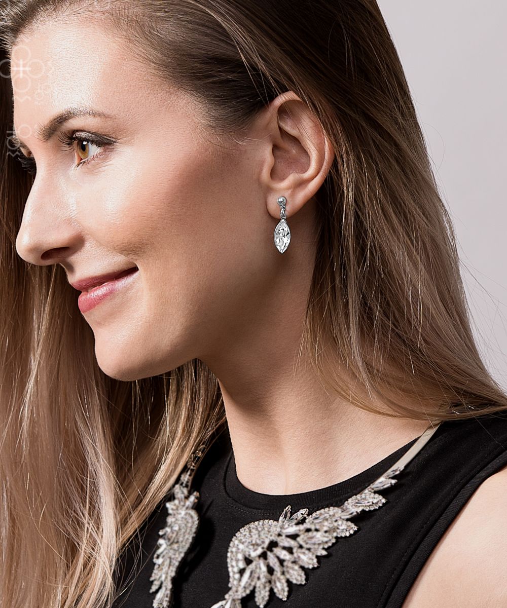 Κομψά και εντυπωσιακά, αυτά τα κρεμαστά σκουλαρίκια είναι διακοσμημένα με διαφανή κρύσταλλα Swarovski σε κοπή marquise, που χαρίζουν εκθαμβωτική λάμψη και πολυτέλεια σε κάθε εμφάνιση. Η κομψή σχεδίαση σε συνδυασμό με τη διαφάνεια των κρυστάλλων τα καθιστά ιδανικά για ιδιαίτερες περιστάσεις ή και για να απογειώσουν την καθημερινή σας εμφάνιση.