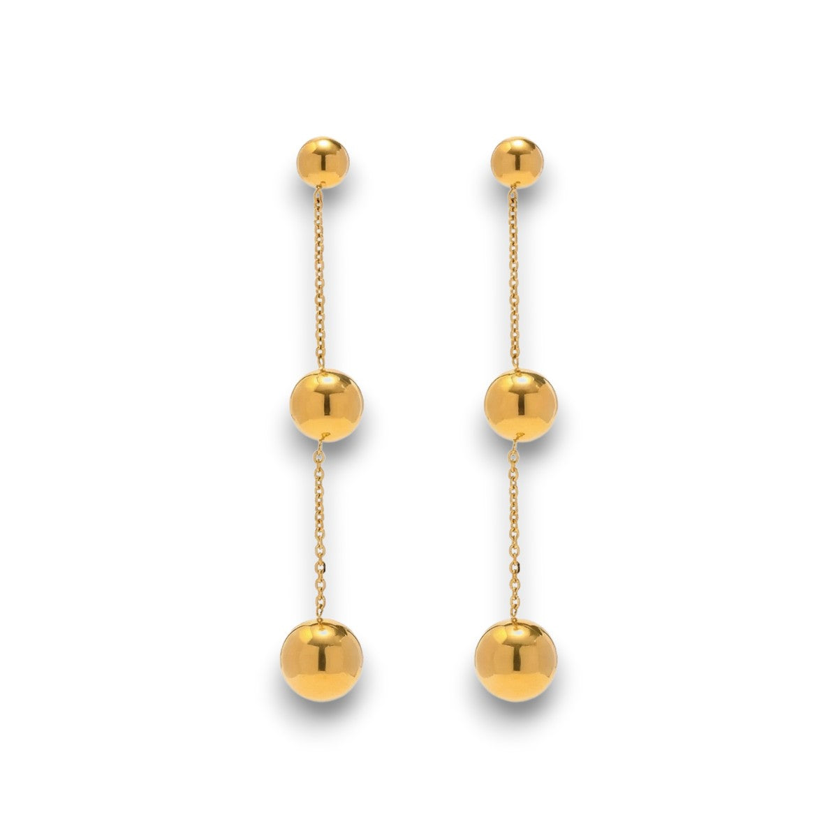 🤍 Μακριά Σκουλαρίκια με Μπάλες από Ατσάλι – Χρυσό | 5 cm