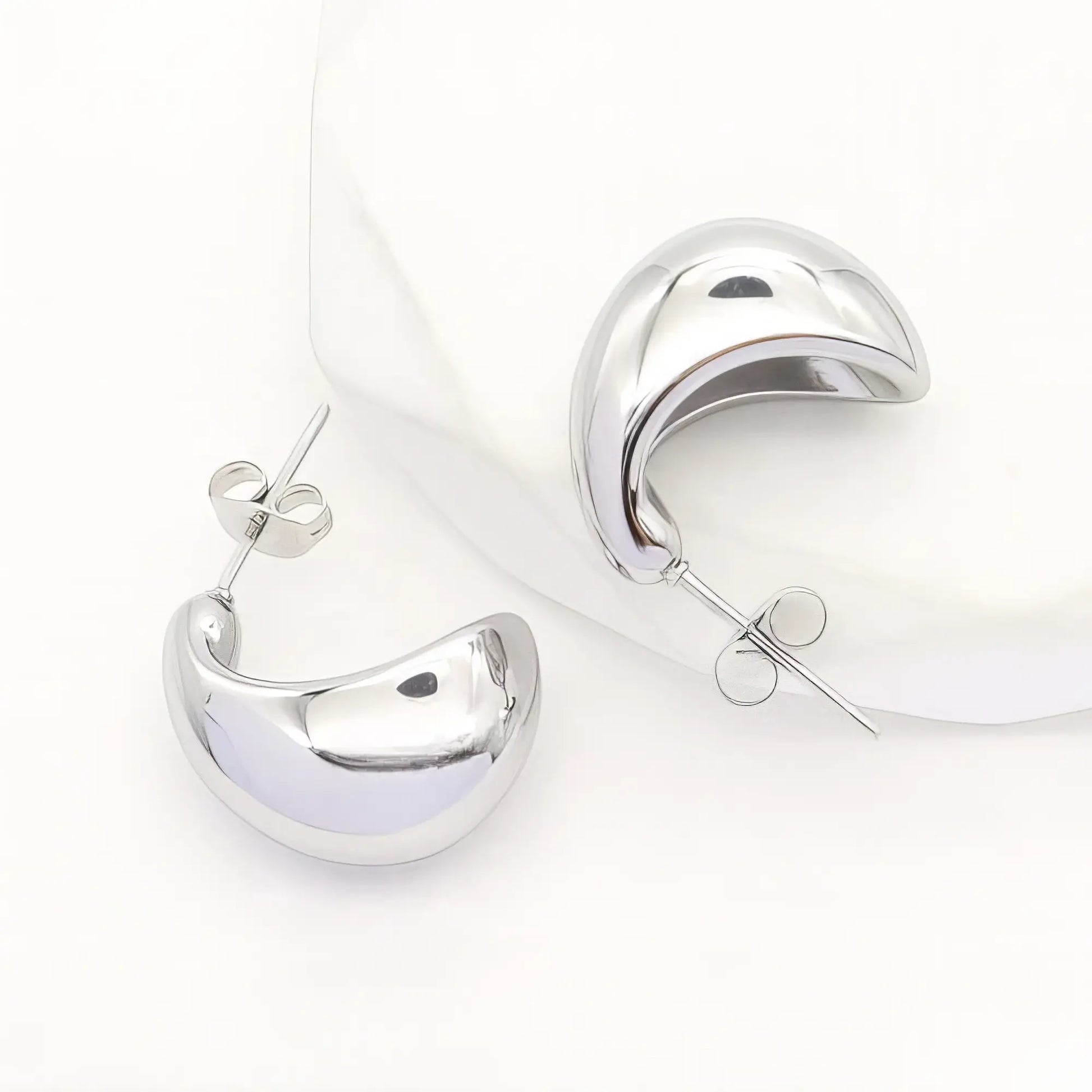 Μοντέρνοι chunky κρίκοι σε ασημί χρώμα, ιδανικοί για να φορεθούν τόσο σε καθημερινά όσο και σε πιο βραδινά σύνολα.