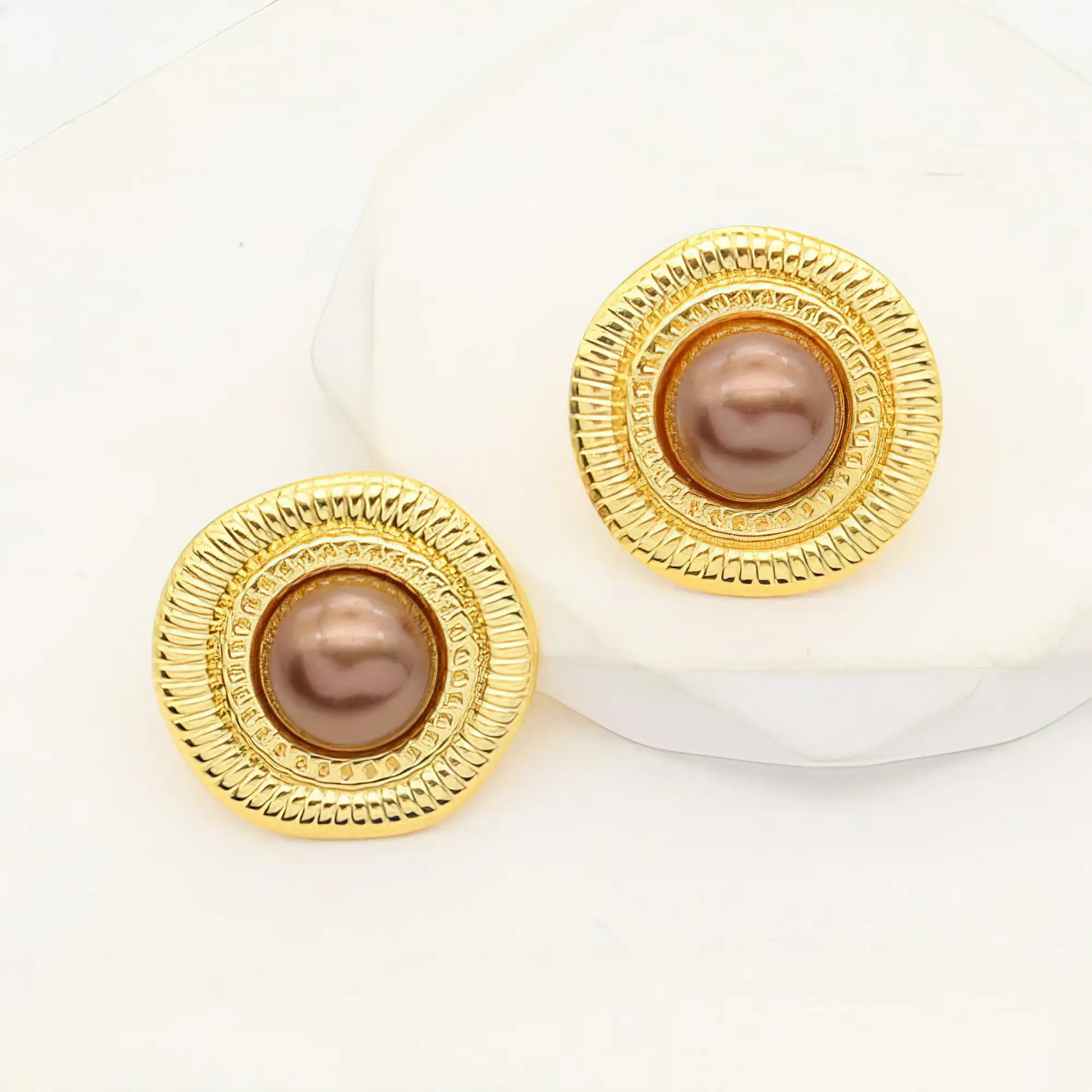 Σκουλαρίκια από ανοξείδωτο ατσάλι σε χρυσό με καφέ πέρλα – 2.5cm (E3326)