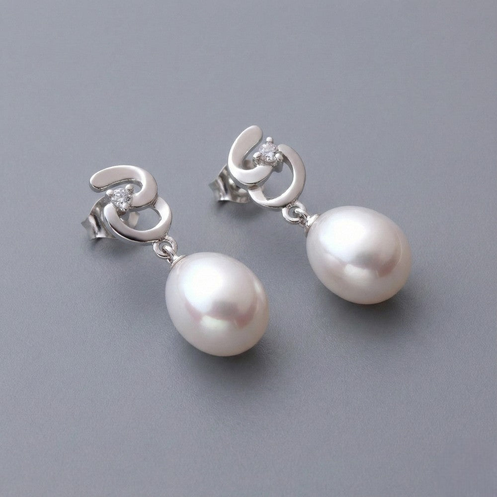 Κομψά Σκουλαρίκια από Ασήμι 925 με Μαργαριτάρια σε Σχήμα Σταγόνας με Ζιργκόν